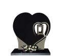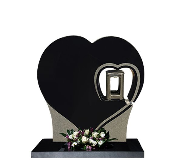 Nett hjertestein med sandlåste detaljer. Steinen kommer helpolert i sort granitt. Den kan brukes både på urne og kistegrav. Passer med lykt som er 16 cm høy.