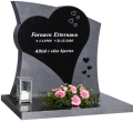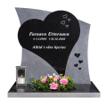 Vises i sort granitt med skrifttype Souvenir i hvit lakk. Lykt 0134 SAT i rustfritt stål og bedplate med ovalt hull.