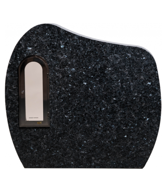 En avrundet stein med buet nisje. Steinen leveres med integrert lykt i stål eller bronse inkludert i prisen. Gravsteinen har polert front, saget kant og bakside, som fremhever de unike karakteristikkene i steinen.