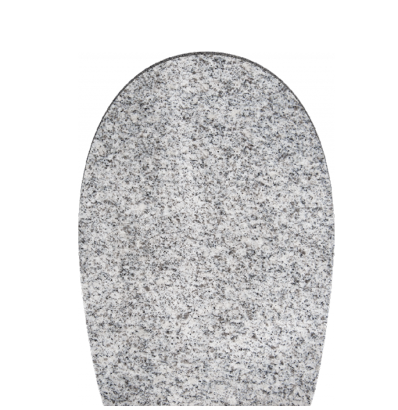 Gravsteiner med avrundet kant er både tidløst og gir steinen et mykere preg. Denne varianten har polert front, saget kant og bakside, som får frem kontrastene i steinen og gir den et elegant utrykk.