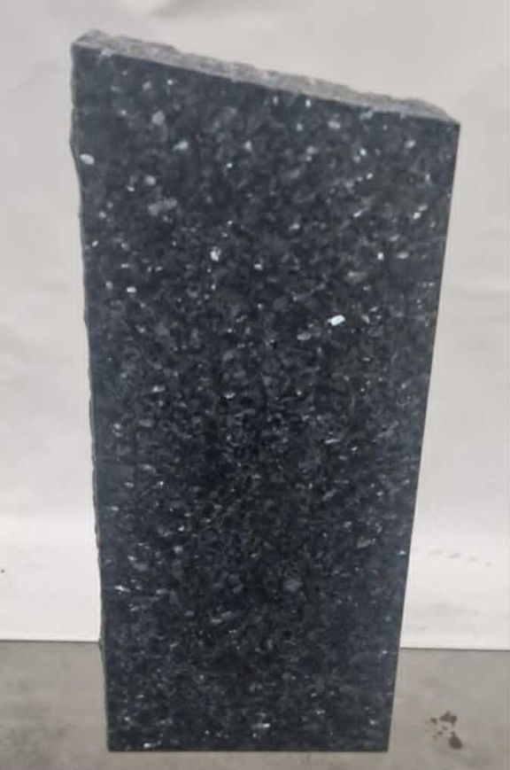 Stein i Lys Larvikitt med polert front, hugget og saget kant.